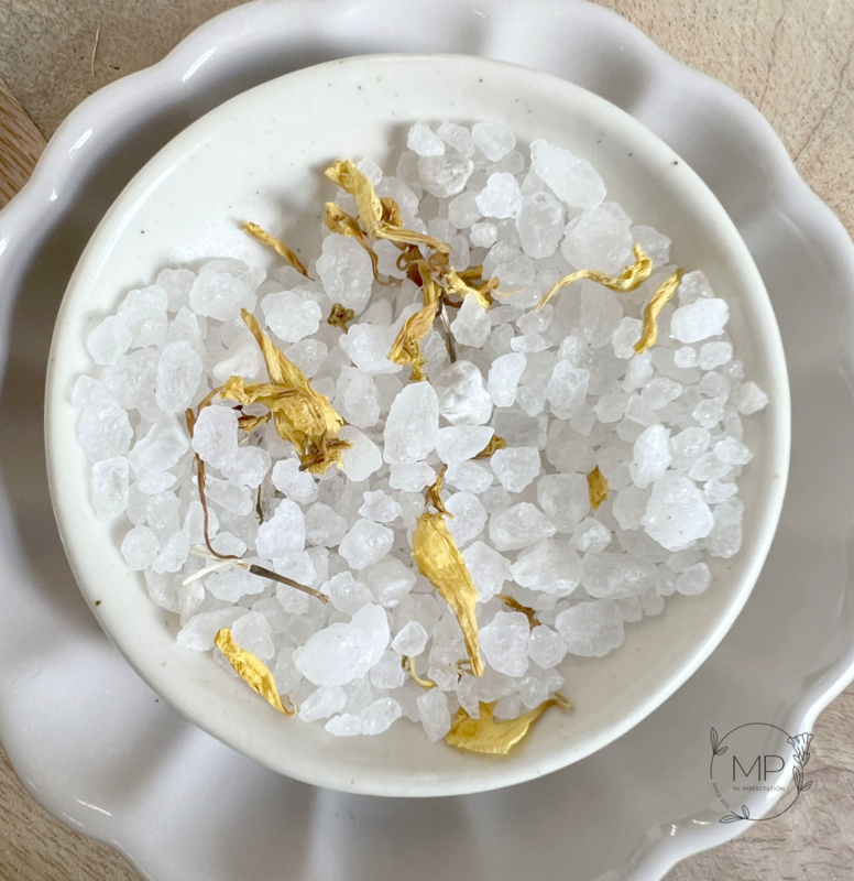 Geen bad, geen probleem, neem dan 1 eetlepel badzout voor een heerlijk voetenbad :)