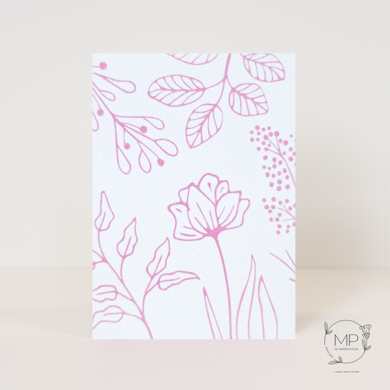 De kaart is A6 formaat en gedrukt op stevig papier met structuur, waardoor het op aquarelpapier lijkt.