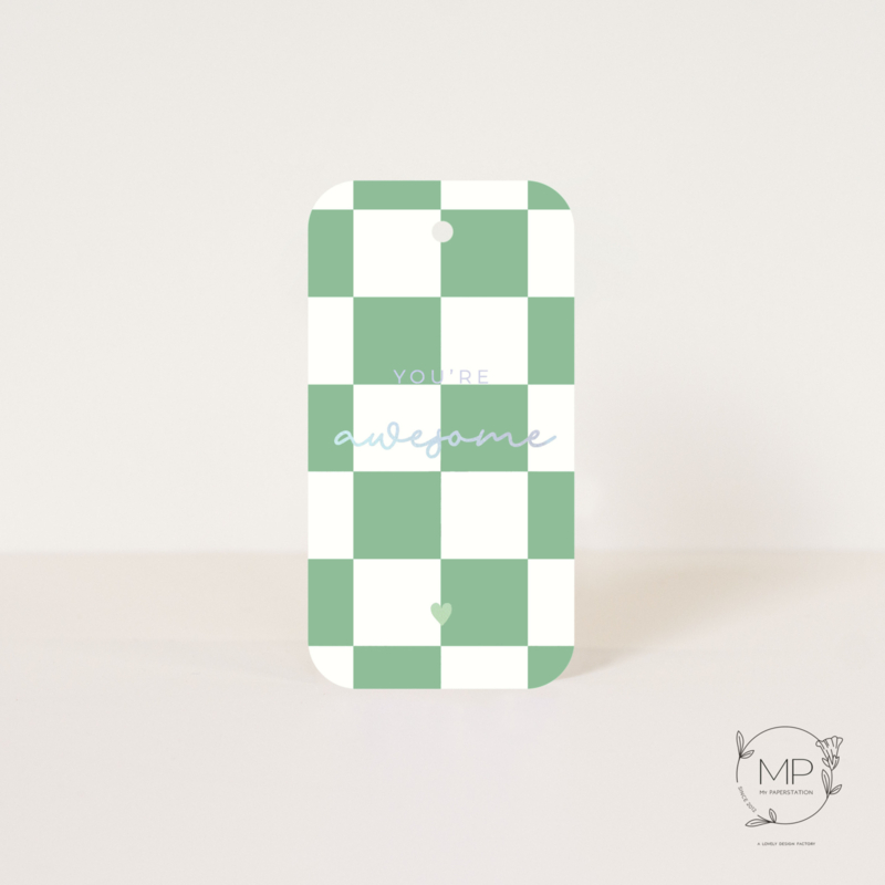 Label You’re awesome / set van 5Label met holografisch zilver en voorzien van afgeronde hoeken.