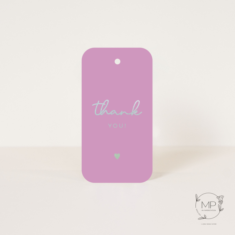 Label Thank you / set van 5Label met holografisch zilver en voorzien van afgeronde hoeken.