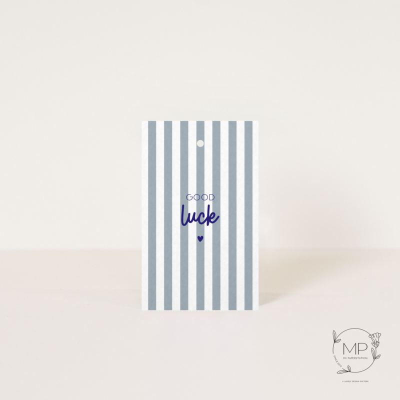 Label Good luck! / set van 5Label met holografisch zilver en voorzien van afgeronde hoeken.
