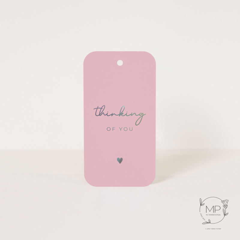 Label Thinking of you / set van 5Label met holografisch zilver en voorzien van afgeronde hoeken.