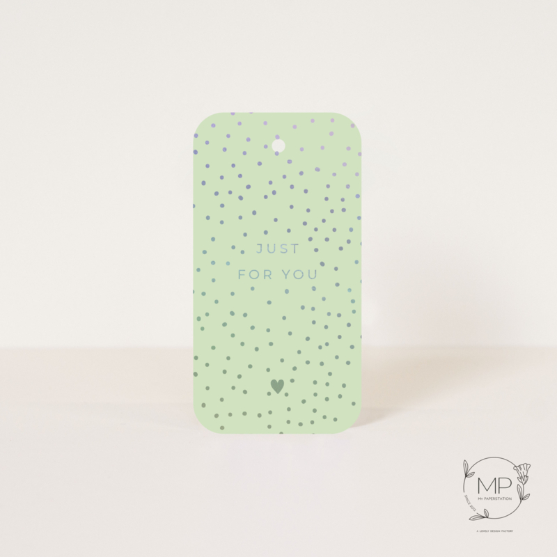 Label Just for you / set van 5Label met holografisch zilver en voorzien van afgeronde hoeken.