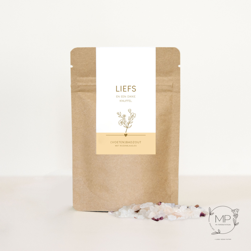 Salt Liefs en een dikke knuffel | 4 stuksZakje (voeten)badzout met rozenblaadjes.